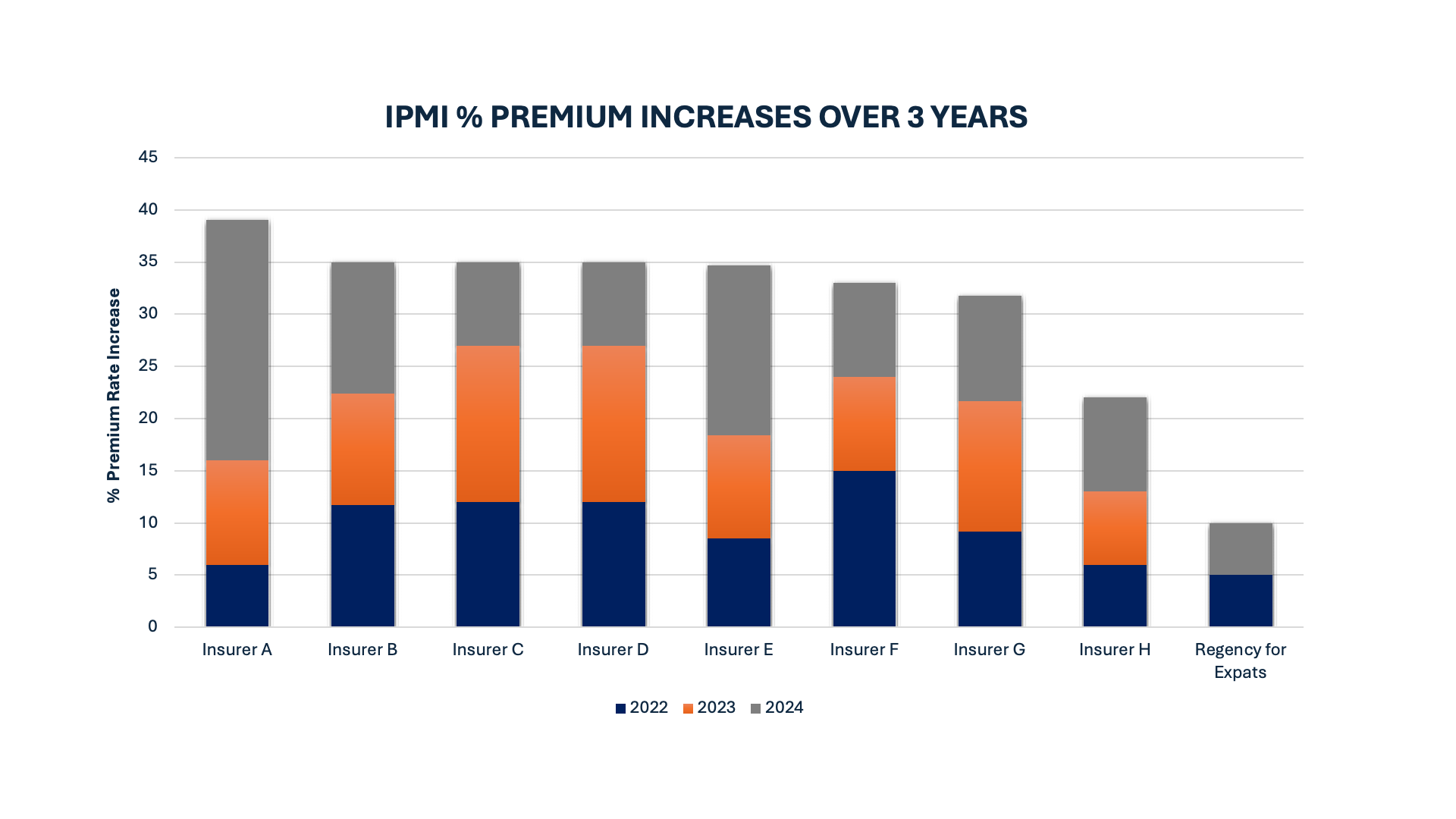 The chart below illustrates this, comparing Regency for Expats premium rate movements with broader market trends in recent years.
